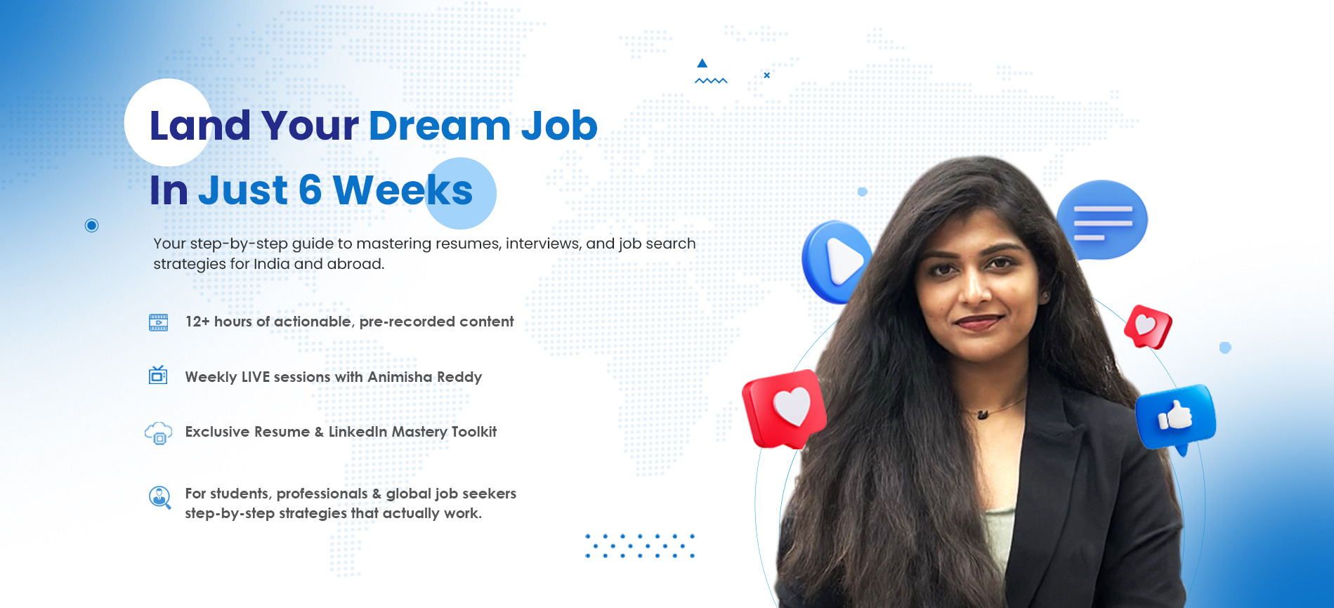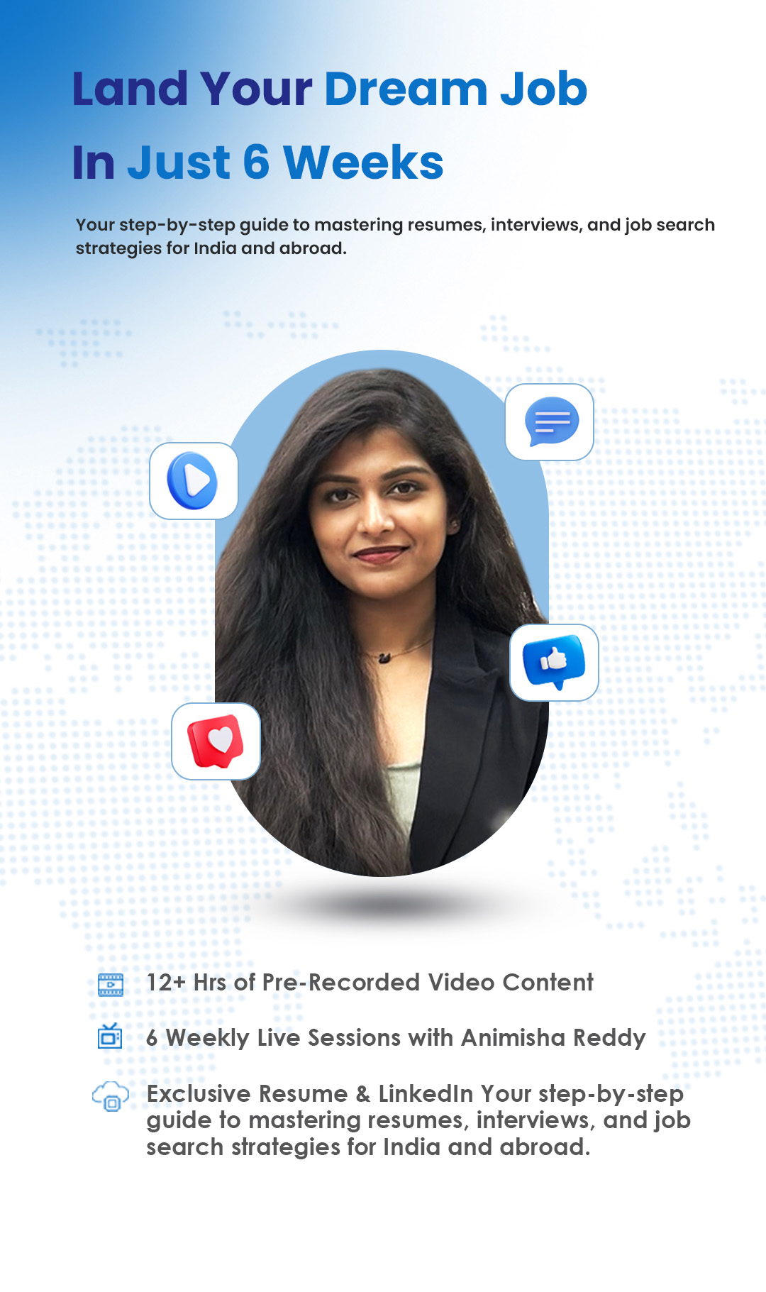 Animisha’s vision? To bridge the gap between education and employability, empowering individuals to navigate the complexities of the job market confidently and successfully. With her at the helm, this course promises to be your ultimate guide to landing your dream job.