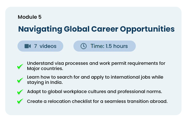 Yes! This course includes modules on international job applications, visa processes, and cultural adaptation to help you secure jobs abroad while staying in India.